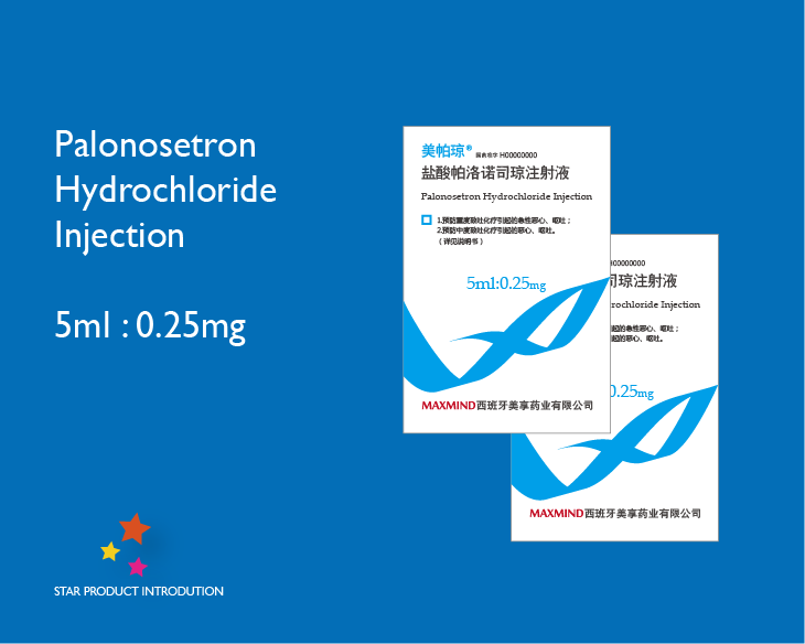 帕洛诺司琼为高选择性5HT3受体拮抗剂,半衰期较长,抗呕吐作用明显,用于预防高度致吐化疗引起的急性恶心、呕吐;中度致吐化疗引起的恶心、呕吐。盐酸帕洛诺司琼注射液原研企业为Helsinn Birex Pharmaceuticals Ltd,商品名为阿洛西®(Aloxi),于2003年7月被美国FDA批准上市。
